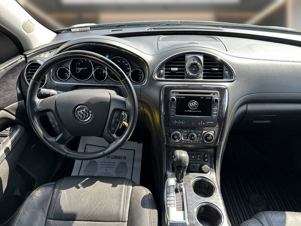 This 2017 Buick Enclave is equipped with 4500lbs Trailering Package (Heavy-Duty Cooling System and Trailer Hitch), Enclave Sport Touring Edition (Ice Toned Satin Black Grille and Wheels: 20 Chrome-Clad Cast Aluminum), Preferred Equipment Group 1SN (8-Way Power Driver Seat Adjuster, 8-Way Power Passenger Seat Adjuster, Bose Performance-Enhanced 10-Speaker System, Bose Sound System, Forward Collision Alert & Lane Departure Warning, Heated Steering Wheel, Memory Settings, Rear Audio System Controls, and Side Blind Zone Alert w/Cross Traffic Alert), Premium Package (Articulating Headlights, Heated & Cooled Driver & Front Passenger Seats, Power Tilt & Telescopic Steering Column, and Power-Folding Heated Body-Color Outside Mirrors), FWD, Navigation System, 10 Speakers, 3.16 Axle Ratio, 3rd row seats: split-bench, 4-Wheel Disc Brakes, 7-Passenger Seating, ABS brakes, Air Conditioning, Alloy wheels, AM/FM radio: SiriusXM, Auto tilt-away steering wheel, Auto-dimming door mirrors, Auto-dimming Rear-View mirror, Automatic temperature control, Brake assist, Bumpers: body-color, CD player, Compass, Delay-off headlights, Driver door bin, Driver vanity mirror, Dual front impact airbags, Dual front side impact airbags, Electronic Stability Control, Emergency communication system: OnStar Guidance, Exterior Parking Camera Rear, Four wheel independent suspension, Front anti-roll bar, Front Bucket Seats, Front Center Armrest w/Storage, Front dual zone A/C, Front reading lights, Fully automatic headlights, Garage door transmitter, Heated door mirrors, Heated front seats, Heated steering wheel, High intensity discharge headlights: Bi-Xenon, Illuminated entry, Leather steering wheel, Low tire pressure warning, Memory seat, NavTraffic, Occupant sensing airbag, Outside temperature display, Overhead airbag, Panic alarm, Passenger door bin, Passenger vanity mirror, Perforated Leather-Appointed Seat Trim, Power door mirrors, Power driver seat, Power Liftgate, Power passenger seat, Power steering, Power Tilt-Sliding Moonroof, Power windows, Radio data system, Radio: Color Touch AM/FM/CD/Nav w/IntelliLink, Rear air conditioning, Rear anti-roll bar, Rear audio controls, Rear Parking Sensors, Rear reading lights, Rear window defroster, Rear window wiper, Remote keyless entry, Roof rack: rails only, Security system, Speed control, Speed-sensing steering, Spoiler, Steering wheel memory, Steering wheel mounted audio controls, Tachometer, Telescoping steering wheel, Tilt steering wheel, Traction control, Trip computer, Turn signal indicator mirrors, Variably intermittent wipers, Ventilated front seats, Voltmeter, and Wheels: 19 Chrome-Clad Cast Aluminum.