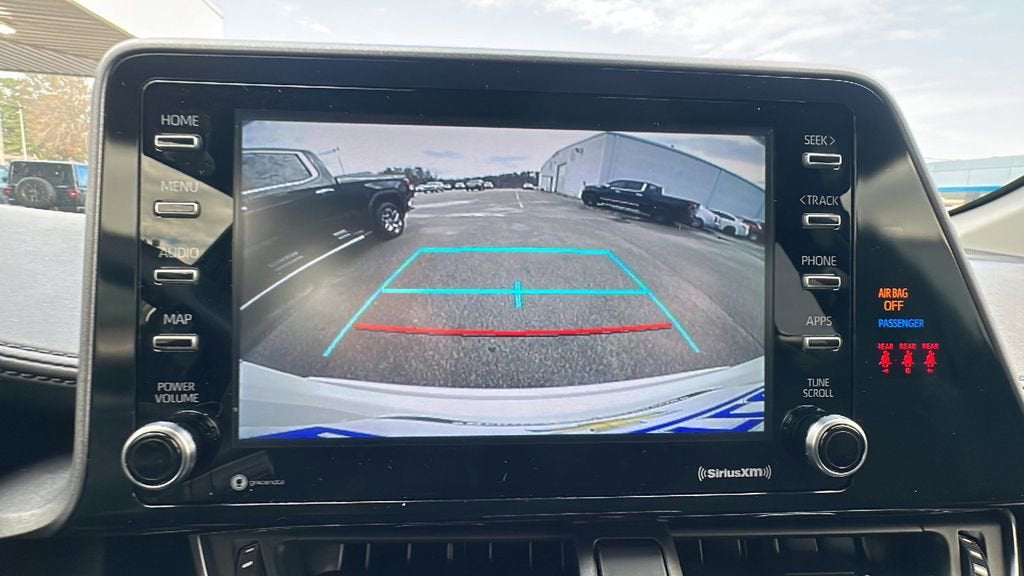 This 2021 Toyota C-HR is equipped with 4-Wheel Disc Brakes, 6 Speakers, ABS brakes, Air Conditioning, AM/FM radio: SiriusXM, Auto High-beam Headlights, Auto-dimming Rear-View mirror, Automatic temperature control, Axle Ratio: TBD, Brake assist, Bumpers: body-color, Delay-off headlights, Driver door bin, Driver vanity mirror, Dual front impact airbags, Dual front side impact airbags, Electronic Stability Control, Emergency communication system: Safety Connect with 1-year trial, Exterior Parking Camera Rear, Fabric Seat Material, Four wheel independent suspension, Front anti-roll bar, Front Bucket Seats, Front Center Armrest, Front dual zone A/C, Front reading lights, Fully automatic headlights, Heated door mirrors, Illuminated entry, Knee airbag, Leather Shift Knob, Low tire pressure warning, Occupant sensing airbag, Outside temperature display, Overhead airbag, Panic alarm, Passenger door bin, Passenger vanity mirror, Power door mirrors, Power steering, Power windows, Radio data system, Radio: AM/FM Stereo w/8 Touch-Screen Display, Rear anti-roll bar, Rear side impact airbag, Rear window defroster, Rear window wiper, Remote keyless entry, Speed control, Speed-sensing steering, Split folding rear seat, Spoiler, Steering wheel mounted audio controls, Tachometer, Telescoping steering wheel, Tilt steering wheel, Traction control, Trip computer, Turn signal indicator mirrors, Variably intermittent wipers, and Wheels: 6.5 x 17 Steel.