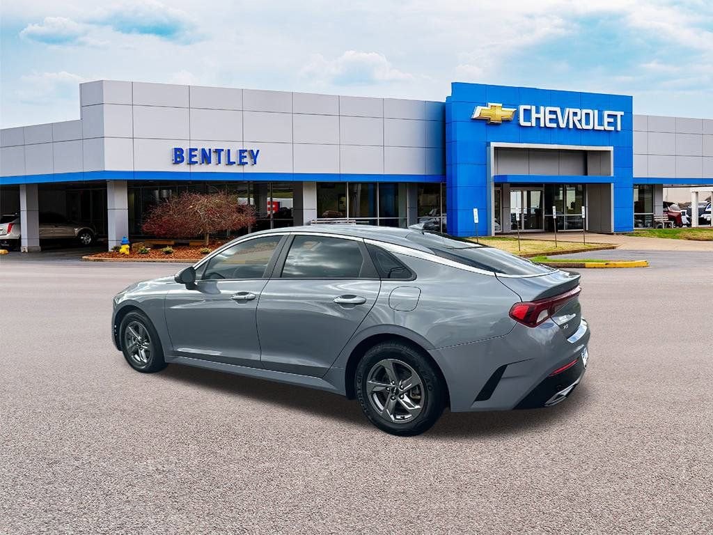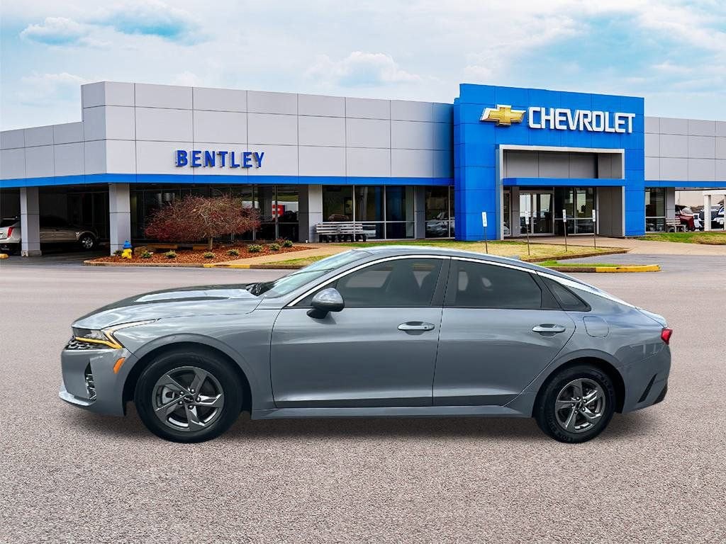 This 2023 Kia K5 is equipped with 4-Wheel Disc Brakes, 6 Speakers, ABS brakes, Air Conditioning, Alloy wheels, AM/FM radio, Auto High-beam Headlights, Automatic temperature control, Brake assist, Bumpers: body-color, Cargo Net, Carpeted Floor Mats, Cloth Seat Trim, Delay-off headlights, Driver door bin, Driver vanity mirror, Dual front impact airbags, Dual front side impact airbags, Electronic Stability Control, Four wheel independent suspension, Front anti-roll bar, Front Bucket Seats, Front Center Armrest, Front dual zone A/C, Front reading lights, Fully automatic headlights, Heated door mirrors, Illuminated entry, Knee airbag, Low tire pressure warning, Occupant sensing airbag, Outside temperature display, Overhead airbag, Overhead console, Panic alarm, Passenger door bin, Passenger vanity mirror, Power door mirrors, Power steering, Power windows, Radio data system, Radio: AM/FM/MP3 Audio System, Rear anti-roll bar, Rear seat center armrest, Rear side impact airbag, Rear window defroster, Remote keyless entry, Security system, Speed control, Speed-sensing steering, Split folding rear seat, Steering wheel mounted audio controls, Tachometer, Telescoping steering wheel, Tilt steering wheel, Traction control, Trip computer, Variably intermittent wipers, and Wheels: 16 Gray Alloy.