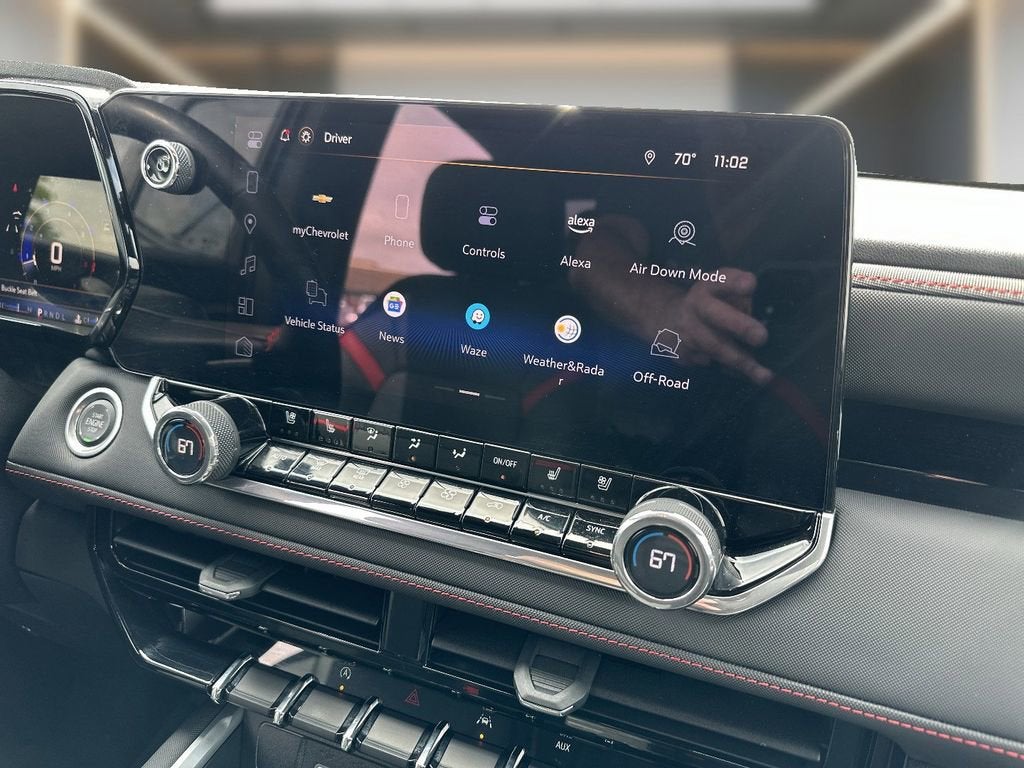 This 2024 Chevrolet Colorado is equipped with Preferred Equipment Group 4Z7 (Automatic Emergency Braking, Chevy Safety Assist, Electronic Automatic Cruise Control, Following Distance Indicator, Forward Collision Alert, Front Pedestrian & Bicyclist Braking, IntelliBeam Automatic High Beam On/Off, Lane Keep Assist w/Lane Departure Warning, and Rear-Window Electric Defogger), Safety Package (Rear Cross Traffic Braking and Rear Park Assist), Technology Package (Adaptive Cruise Control, HD Surround Vision, and Rear Pedestrian Alert), Z71 Convenience Package II (8-Way Power Driver Seat Adjuster, Dual-Zone Automatic Air Conditioning, EZ-Lift & Lower Tailgate, Heated Driver & Front Passenger Seats, Inside Rear-View Auto-Dimming Mirror, Power Driver Lumbar Control Seat Adjuster, Remote Vehicle Starter System, StowFlex Tailgate Storage Compartment, Tailgate Keyed Cylinder Lock, Tilt & Telescoping Steering Column, and Wireless Charging), Z71 Convenience Package III (Driver & Front Passenger Ventilated Seats, Driver Memory Settings, Driver Seatback Map Pocket, Heated Steering Wheel, Perforated Leather-Appointed Seat Trim, and Rear Center Armrest), Chevrolet Certified Pre-Owned Certified, 4WD, Navigation System, 3.42 Rear Axle Ratio, 4-Way Manual Passenger Seat Adjuster, 4-Wheel Disc Brakes, 6 Speakers, 6-Speaker Audio System Feature, 6-Way Manual Driver Seat Adjuster, ABS brakes, Air Conditioning, Alloy wheels, AM/FM radio: SiriusXM, Apple CarPlay/Android Auto, Auto High-beam Headlights, Blind Zone Steering Assist, Bose Premium 7-Speaker Audio System Feature, Brake assist, Bumpers: body-color, Cloth/Evotex Seat Trim, Compass, Delay-off headlights, Driver door bin, Driver vanity mirror, Dual front impact airbags, Dual front side impact airbags, Electronic Stability Control, Front anti-roll bar, Front Bucket Seats, Front Center Armrest, Front fog lights, Front Passenger Seatback Map Pocket, Front reading lights, Front wheel independent suspension, Heated door mirrors, Illuminated entry, Low tire pressure warning, Occupant sensing airbag, Outside temperature display, Overhead airbag, Overhead console, Panic alarm, Passenger door bin, Passenger vanity mirror, Power door mirrors, Power steering, Power windows, Radio data system, Radio: 11.3 Diagonal Advanced Color LCD Display, Rear reading lights, Rear step bumper, Rear window defroster, Remote keyless entry, Security system, SiriusXM Radio, Speed control, Speed-sensing steering, Split folding rear seat, Steering Wheel Mounted Audio Controls, Steering wheel mounted audio controls, Tachometer, Tilt steering wheel, Traction control, Trip computer, Variably intermittent wipers, Wheels: 18 x 8.5 Android Dark Fu