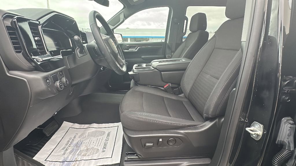 This 2024 Chevrolet Silverado 1500 is equipped with Convenience Package (10-Way Power Driver Seat w/Lumbar, 120-Volt Bed Mounted Power Outlet, 120-Volt Interior Power Outlet, Dual Rear USB Ports (Charge Only), Dual-Zone Automatic Climate Control, Heated Driver & Front Outboard Passenger Seats, Heated Steering Wheel, Keyless Open & Start, and Wrapped Steering Wheel), Preferred Equipment Group 1LT (12.3 Multicolor Reconfigurable Digital Display, All-Star Edition, Auto-Locking Rear Differential, Bluetooth® For Phone, Chevrolet Connected Access Capable, Chrome Mirror Caps, Color-Keyed Carpeting Floor Covering, Deep-Tinted Glass, Electrical Steering Column Lock, Electronic Cruise Control, EZ Lift Power Lock & Release Tailgate, Front Rubberized Vinyl Floor Mats, HD Rear Vision Camera, Heated Power-Adjustable Outside Mirrors, Inside Rear-View Mirror w/Tilt, LED Cargo Area Lighting, OnStar & Chevrolet Connected Services Capable, Power Front Windows w/Driver Express Up/Down, Power Front Windows w/Passenger Express Down, Power Rear Windows w/Express Down, Rear 60/40 Folding Bench Seat (Folds Up), Rear Rubberized-Vinyl Floor Mats, SiriusXM w/360L, Standard Tailgate, Steering Wheel Audio Controls, and Wi-Fi Hot Spot Capable), Remote Start Package (Electric Rear-Window Defogger, Remote Vehicle Starter System, and Theft Deterrent System (Unauthorized Entry)), Standard Suspension Package, Trailering Package (Hitch Guidance), 10-Speed Automatic, Jet Black Cloth, 170 Amp Alternator, 220 Amp Alternator, 3.23 Rear Axle Ratio, 4-Wheel Disc Brakes, 40/20/40 Front Split-Bench Seat, 6 Speakers, 6-Speaker Audio System, ABS brakes, Air Conditioning, Alloy wheels, AM/FM radio: SiriusXM with 360L, Auto High-beam Headlights, Automatic Emergency Braking, Automatic temperature control, Auxiliary External Transmission Oil Cooler, Brake assist, Bumpers: chrome, Chrome Assist Steps, Cloth Seat Trim, Compass, Delay-off headlights, Driver door bin, Driver vanity mirror, Dual front impact airbags, Dual front side impact airbags, Electronic Stability Control, External Engine Oil Cooler, Following Distance Indicator, Forward Collision Alert, Front anti-roll bar, Front Center Armrest w/Storage, Front dual zone A/C, Front Pedestrian Braking, Front reading lights, Front wheel independent suspension, Fully automatic headlights, Heated door mirrors, Heated front seats, Heated steering wheel, Illuminated entry, IntelliBeam Automatic High Beam On/Off, Lane Keep Assist w/Lane Departure Warning, Low tire pressure warning, Occupant sensing airbag, Outside temperature display, Overhead airbag, Overhead console, Panic alarm, Passenger door bin, Passenger vanity mirror, Power door mirrors, Power driver seat, Power steering, Power windows, Premium audio system: Chevrolet Infotainment 3 Premium, Radio data system, Radio: Chevrolet Infotainment 3 Premium System, Rear reading lights, Rear step bumper, Rear window defroster, Remote keyless entry, Security system, Speed control, Speed-sensing steering, Split folding rear seat, Steering wheel mounted audio controls, Tachometer, Telescoping steering wheel, Tilt steering wheel, Traction control, Trip computer, Variably intermittent wipers, Voltmeter, and Wheels: 17 x 8 Bright Silver Painted Aluminum.