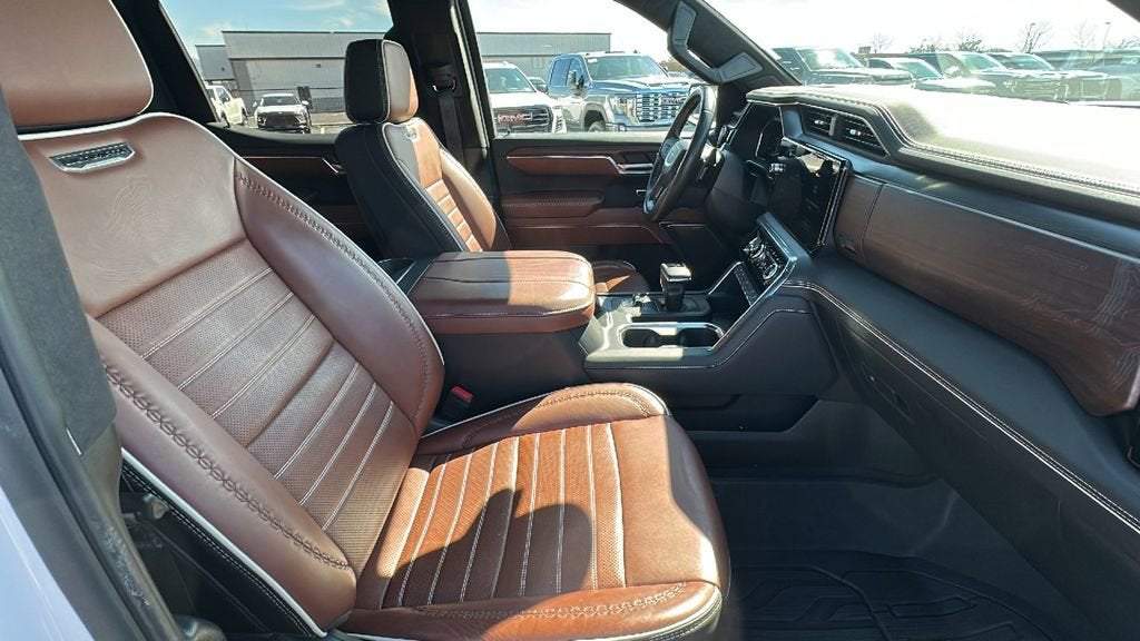 This 2024 GMC Sierra 1500 is equipped with Preferred Equipment Group 5SB (120-Volt Bed Mounted Power Outlet, 120-Volt Interior Power Outlet, 2 Charge/Data USB Ports Inside Center Console, 2 Type-C Charge-Only Rear USB Ports, 2 USB Ports, Auto-Locking Rear Differential, Bed View Camera, Bose Premium Series w/12-Speaker System, Chrome Recovery Hooks, Color-Keyed Carpeting Floor Covering, Deep-Tinted Glass, Electric Rear-Window Defogger, Floor-Mounted Center Console, Front Rain-Sensing Wipers, GMC Connected Access Capable, HD Surround Vision, Heated 2nd Row Outboard Seats, Heated Driver & Front Outboard Passenger Seating, Heavy-Duty Air Filter, Hill Descent Control, Hitch View, In-Vehicle Trailering System App, Integrated Trailer Brake Controller, Keyless Open & Start, LED Cargo Area Lighting, Multicolor 15 Diagonal Head-Up Display, MultiPro Tailgate Audio System by Kicker (LPO), OnStar & GMC Connected Services Capable, Perimeter Lighting, Power Door Locks, Power Front Passenger Windows w/Express Up/Down, Power Front Windows w/Driver Express Up/Down, Power Rake & Telescoping Steering Column, Power Rear Windows w/Express Down, Power Sliding Rear Window w/Rear Defogger, Power Sunroof, Push Button Start, Rear Cross Traffic Braking, Rear Pedestrian Detection, Rear Wheelhouse Liners, Remote Vehicle Starter System, SiriusXM w/360L, Spray-On Pickup Bedliner w/Denali Logo, Steering Wheel Audio Controls, Theft Deterrent System (Unauthorized Entry), Trailer Camera Provisions, Trailer Side Blind Zone Alert, Trailer Tire Pressure Monitor System, Ultrasonic Front & Rear Park Assist, Universal Home Remote, Vader Chrome Header w/Signature Denali Grille, Ventilated Driver & Front Passenger Seats, Wi-Fi Hotspot Capable, and Wireless Charging), Trailering Package (Hitch Guidance), GMC Certified Pre-Owned Certified, 10-Speed Automatic, 4WD, Alpine Umber Leather, Navigation System, 12 Speakers, 16-Way Power Driver Seat Adjuster w/Lumbar, 16-Way Power Passenger Seat Adjuster w/Lumbar,