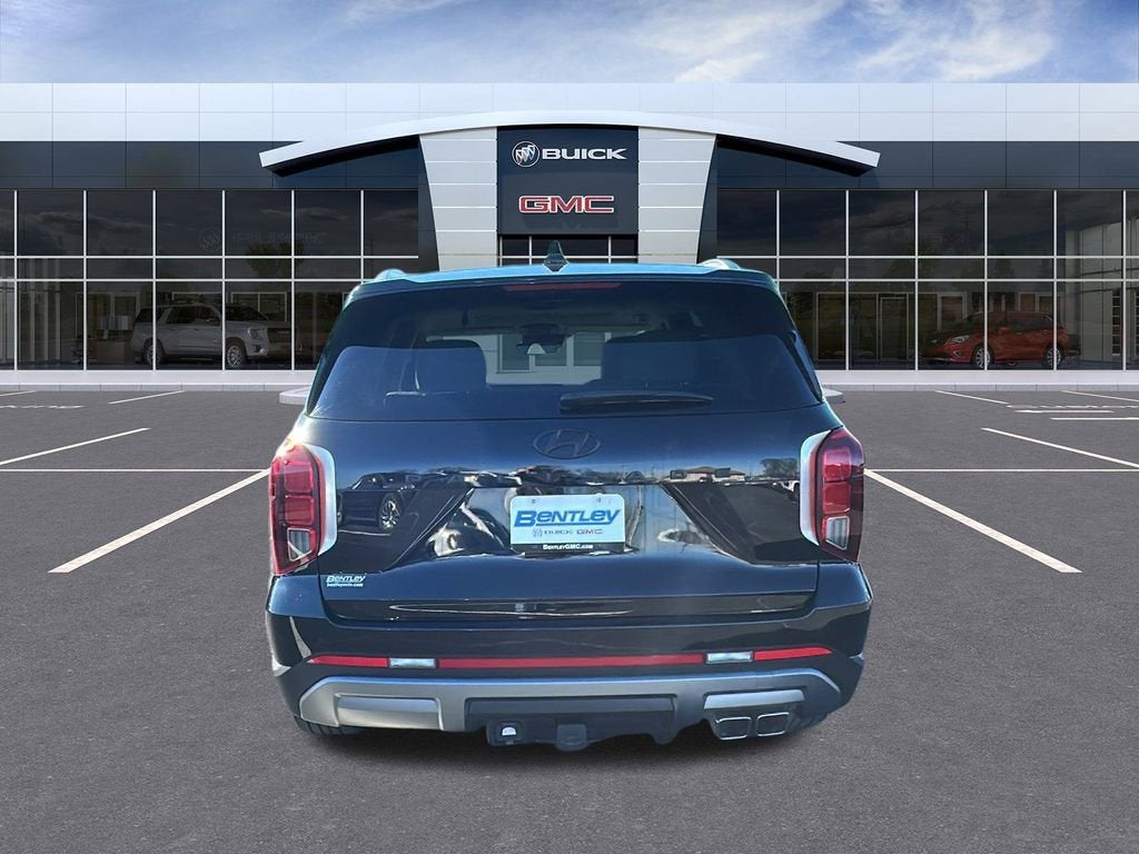 This 2024 Hyundai Palisade is equipped with Option Group 01, Navigation System, 12 Speakers, 3.510 Axle Ratio, 3rd row seats: split-bench, 4-Wheel Disc Brakes, ABS brakes, Air Conditioning, Alloy wheels, AM/FM radio: SiriusXM, Apple CarPlay & Android Auto, Auto High-beam Headlights, Auto-dimming door mirrors, Auto-dimming Rear-View mirror, Auto-leveling suspension, Automatic temperature control, Brake assist, Bumpers: body-color, Cargo Tray, Carpeted Floor Mats, Compass, Delay-off headlights, Driver door bin, Driver vanity mirror, Dual front impact airbags, Dual front side impact airbags, Electronic Stability Control, Emergency communication system, Exterior Parking Camera Rear, Four wheel independent suspension, Front anti-roll bar, Front Bucket Seats, Front Center Armrest, Front dual zone A/C, Front reading lights, Fully automatic headlights, Garage door transmitter: HomeLink, harman/kardon® Speakers, Heads-Up Display, Heated & Ventilated Front Bucket Seats, Heated door mirrors, Heated front seats, Heated rear seats, Heated steering wheel, Illuminated entry, Knee airbag, Leather Seat Trim, Low tire pressure warning, Memory seat, Occupant sensing airbag, Outside temperature display, Overhead airbag, Overhead console, Panic alarm, Passenger door bin, Passenger vanity mirror, Power door mirrors, Power driver seat, Power Liftgate, Power moonroof, Power passenger seat, Power steering, Power windows, Radio data system, Radio: AM/FM/MP3 Premium Audio System, Rain sensing wipers, Rear air conditioning, Rear anti-roll bar, Rear audio controls, Rear reading lights, Rear side impact airbag, Rear window defroster, Rear window wiper, Reclining 3rd row seat, Remote keyless entry, Security system, Speed control, Speed-sensing steering, Split folding rear seat, Spoiler, Steering wheel mounted audio controls, Tachometer, Telescoping steering wheel, Tilt steering wheel, Tow Hitch, Traction control, Trip computer, Turn signal indicator mirrors, Variably intermittent wipers, Ventilated front seats, Ventilated rear seats, and Wheels: 20 x 7.5J Alloy. 19/26 City/Highway MPG
